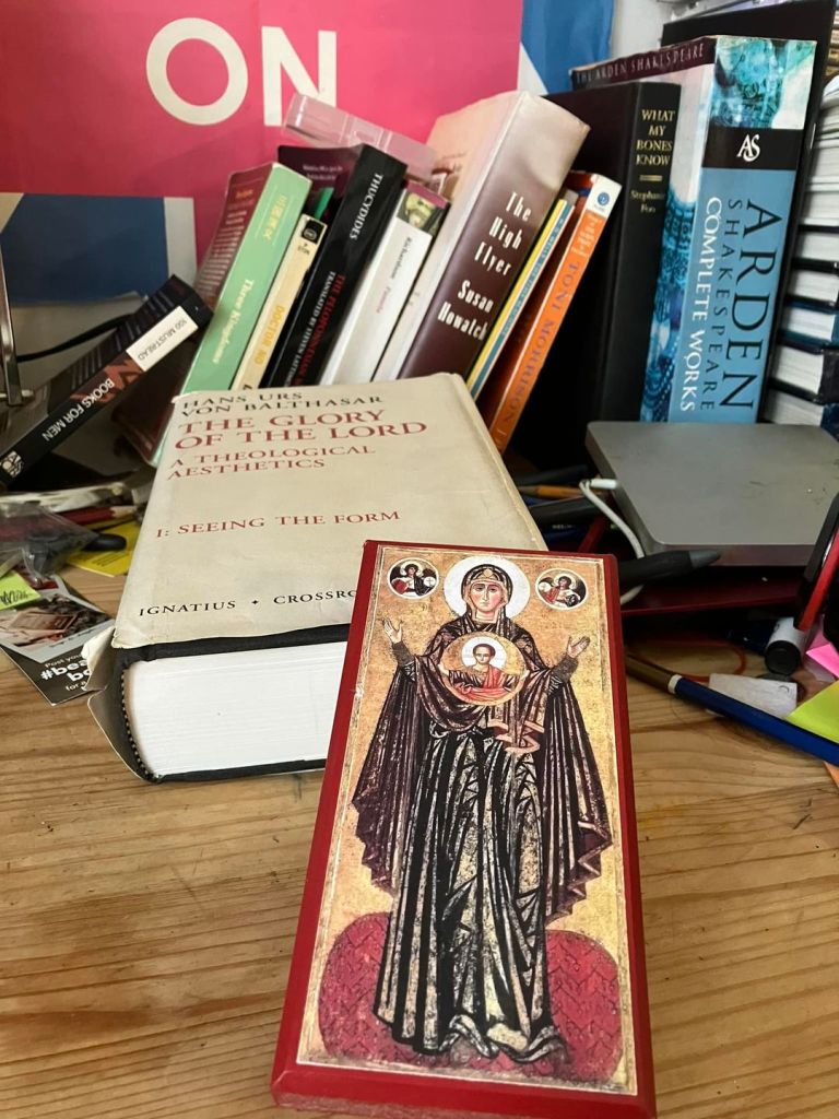 I’m in a different place now. Over the last year — and indeed, in the hiatus of my reading of Balthasar — I feel like I’ve grown as a scholar. Maybe it’s because I’ve also been watching Doctor Who while reading theoretical works like Amia Srinavasan’s The Right to Sex. Perhaps it is because I’ve moved offices too and uncovered so many books and things I want to be part of my reading diet.